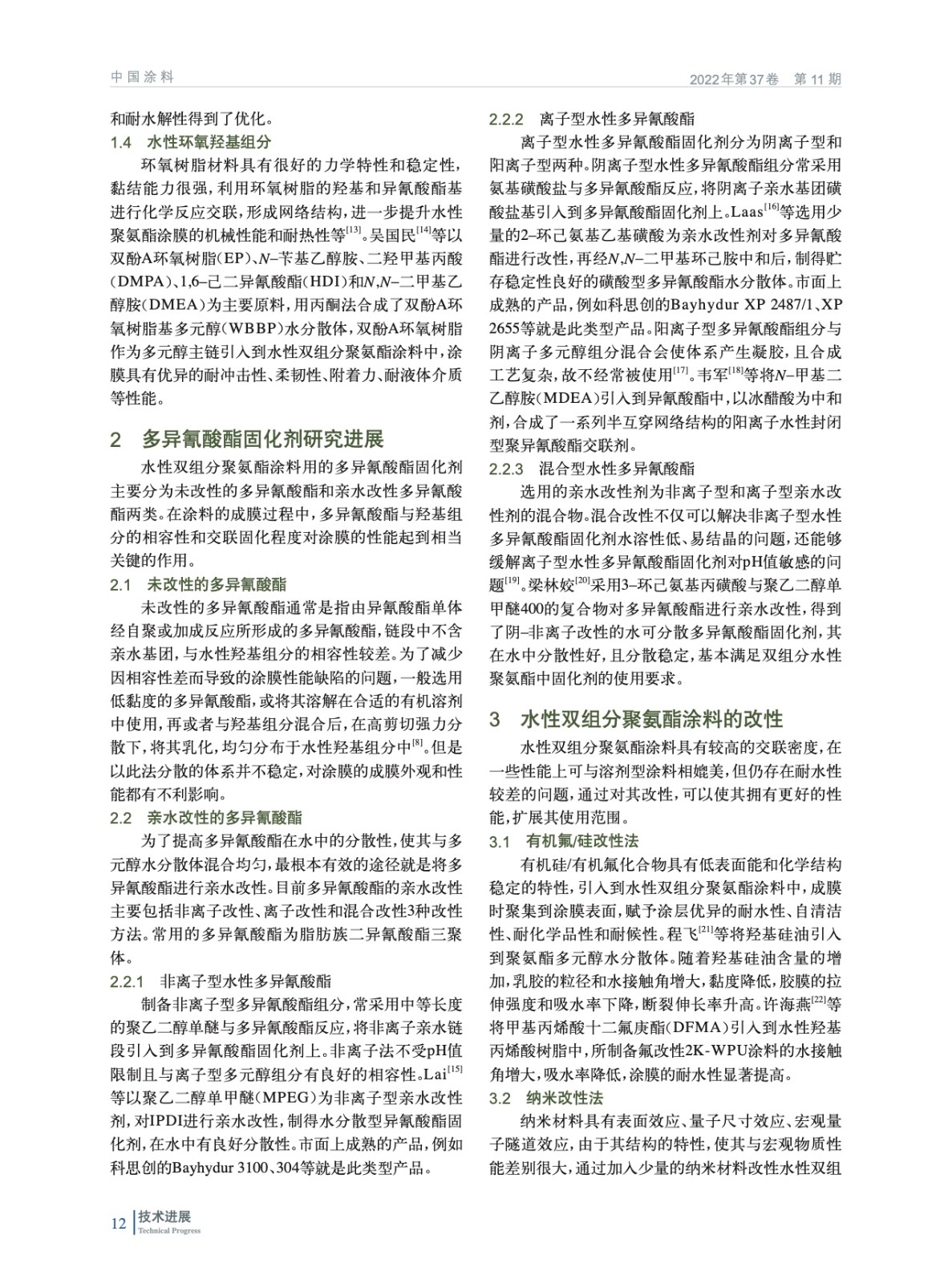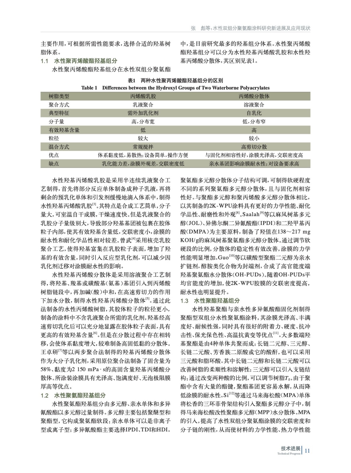 介紹了水性雙組分聚氨酯涂料的組成,對其羥基組分、多異氰酸酯固化劑的研究進展進行了綜述,并論述了其改性研究和應用現狀。