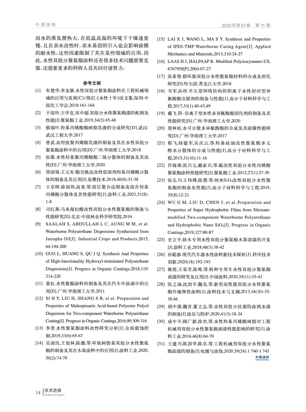 水性雙組分聚氨酯涂料研究新進展及應用現狀