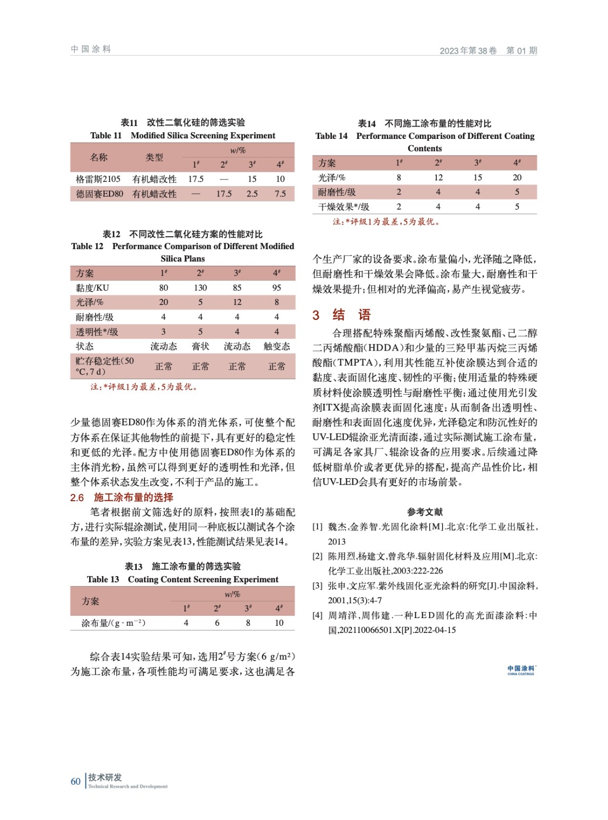 針對UV-LED輥涂亞光清面漆,從UV樹脂、活性稀釋劑、硬質填料、光引發劑和消光粉選擇等方面進行探討,通過實驗論證以及輥涂設備應用測試,驗證了其在工業化應用上的可行性。