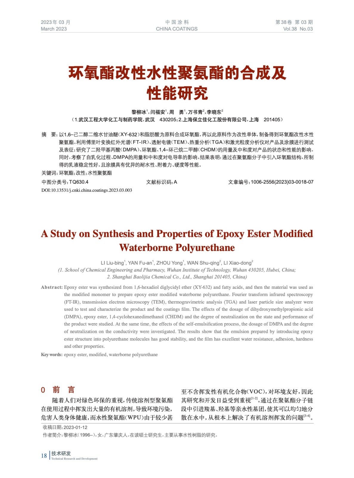 本文系作者@黎柳冰,閆福安,周 勇,萬書青,李曉東 授權中國涂料網發表,并經中國涂料網編輯,未經允許不得轉載,如需轉載請聯系chinacoatingnet@vip.163.com