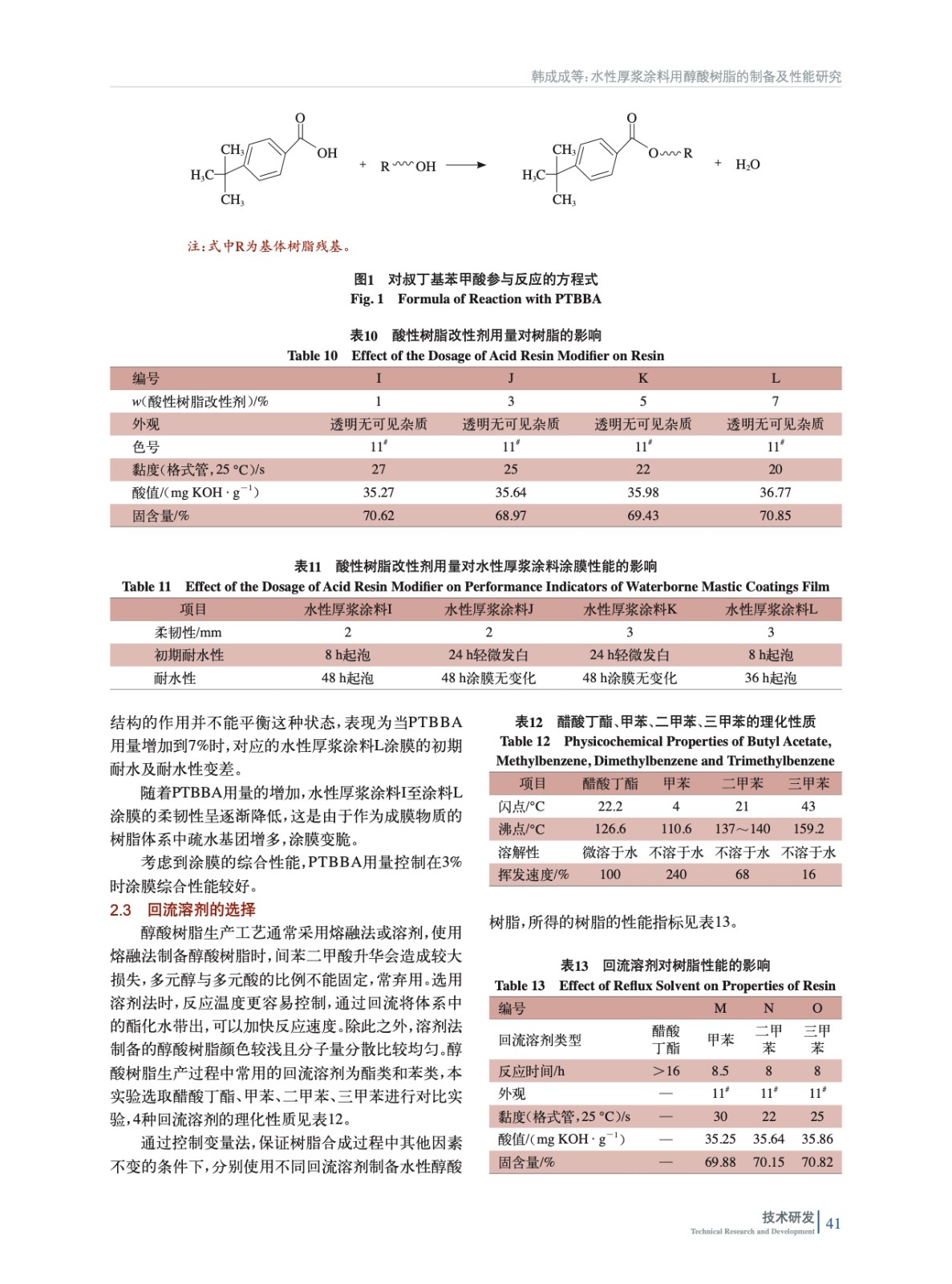 使用妥爾油脂肪酸制備合成水性厚漿涂料用醇酸樹脂,通過探究脂肪酸的種類及含量、酸性樹脂改性劑對叔丁基苯甲酸的用量及回流溶劑的選擇對水性醇酸樹脂的制備過程及產品性能指標的影響得出水性厚漿涂料用醇酸樹脂優化配方。