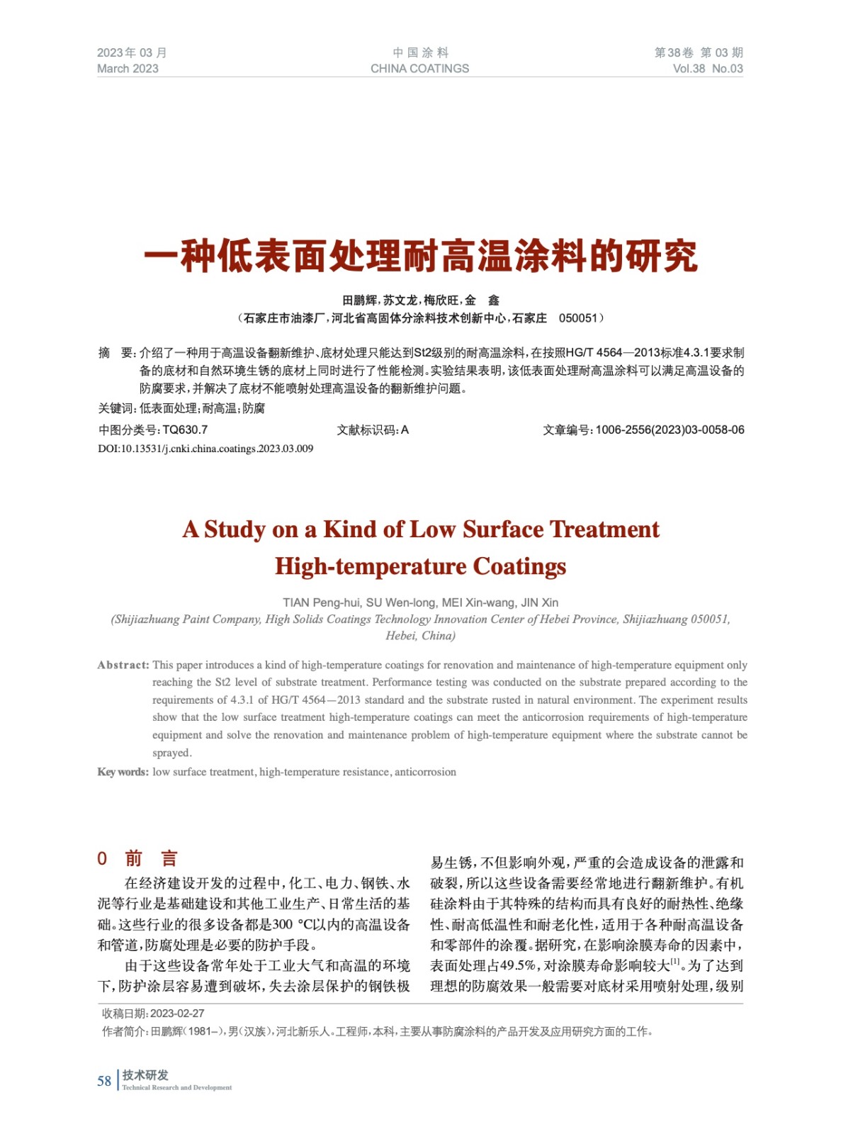 本文系作者@田鵬輝,蘇文龍,梅欣旺,金 鑫 授權中國涂料網發表,并經中國涂料網編輯,未經允許不得轉載,如需轉載請聯系chinacoatingnet@vip.163.com