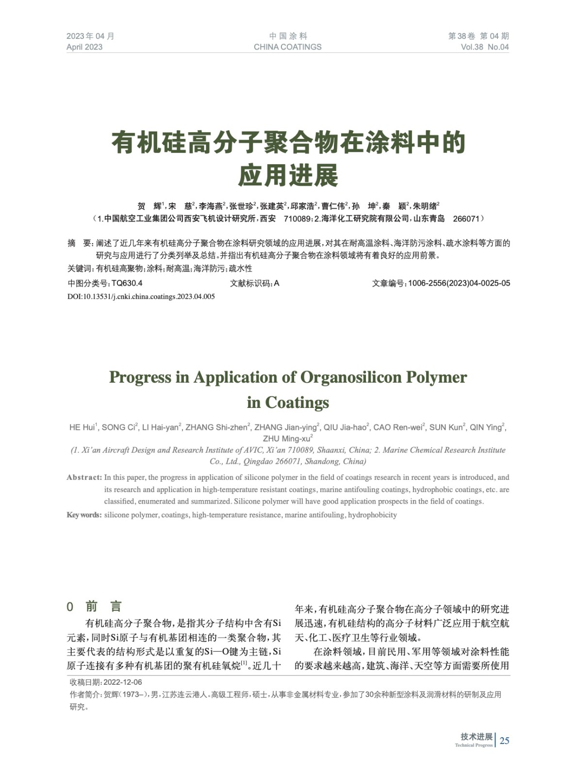 本文系作者@賀 輝,宋 慈,李海燕,張世珍,張建英,邱家浩,曹仁偉,孫 坤,秦 穎,朱明緒 授權中國涂料網發表,并經中國涂料網編輯,未經允許不得轉載,如需轉載請聯系chinacoatingnet@vip.163.com