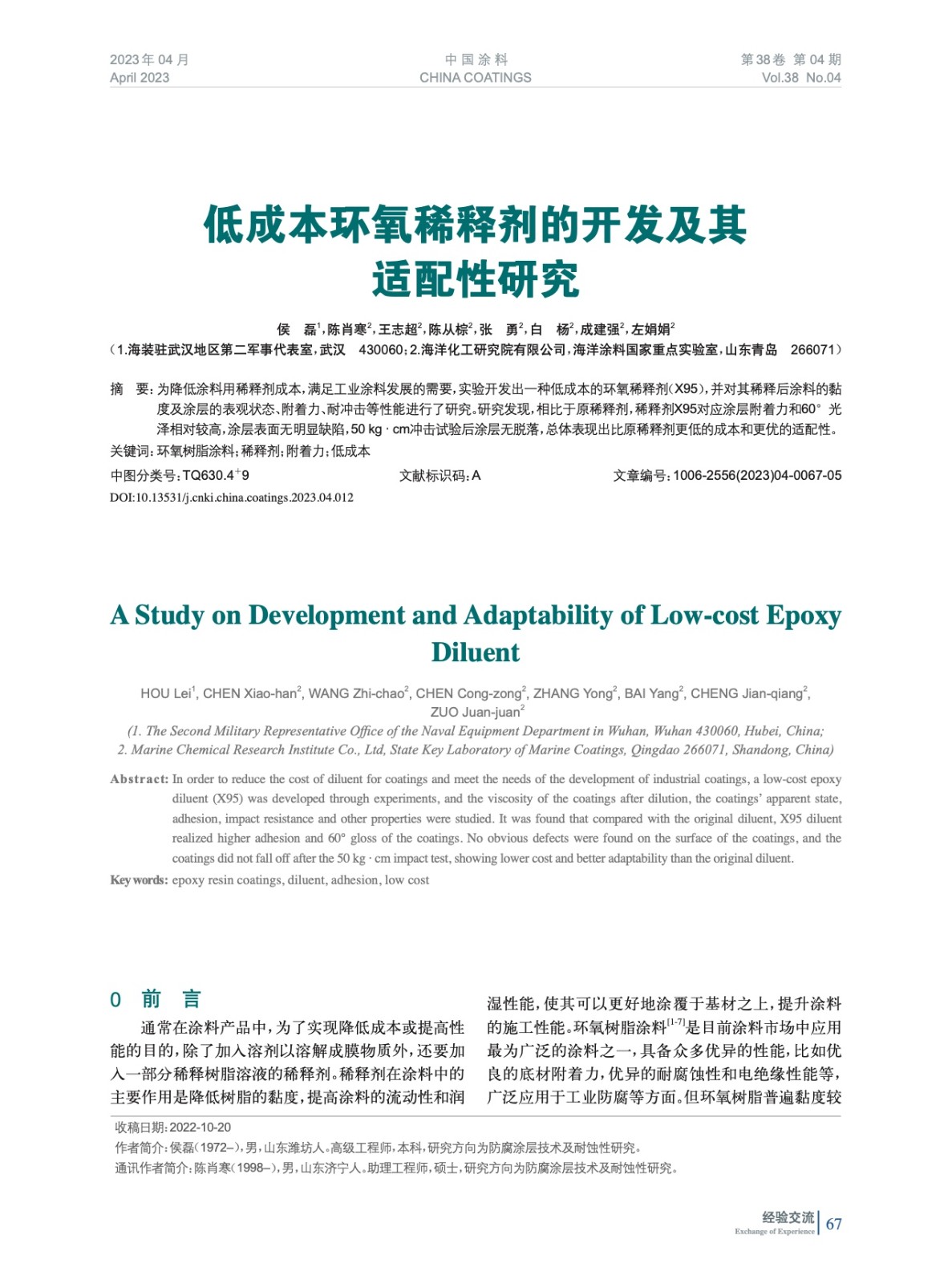 本文系作者@侯 磊,陳肖寒,王志超,陳從棕,張 勇,白 楊,成建強,左娟娟 授權(quán)中國涂料網(wǎng)發(fā)表,并經(jīng)中國涂料網(wǎng)編輯,未經(jīng)允許不得轉(zhuǎn)載,如需轉(zhuǎn)載請聯(lián)系chinacoatingnet@vip.163.com