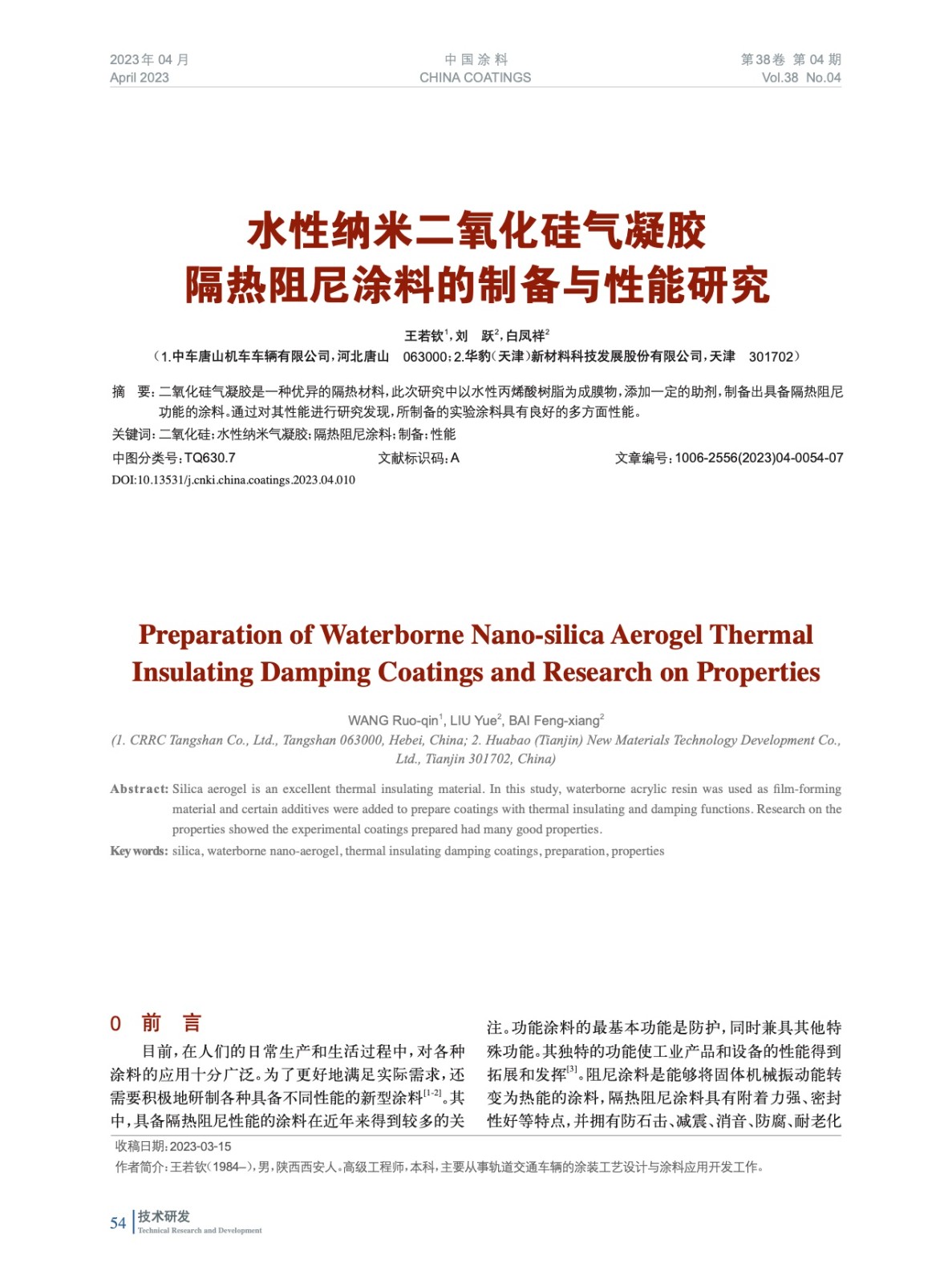 本文系作者@王若欽,劉 躍,白鳳祥 授權中國涂料網發表,并經中國涂料網編輯,未經允許不得轉載,如需轉載請聯系chinacoatingnet@vip.163.com