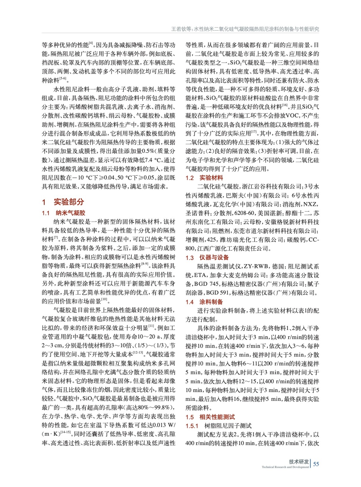 水性納米二氧化硅氣凝膠隔熱阻尼涂料的制備與性能研究