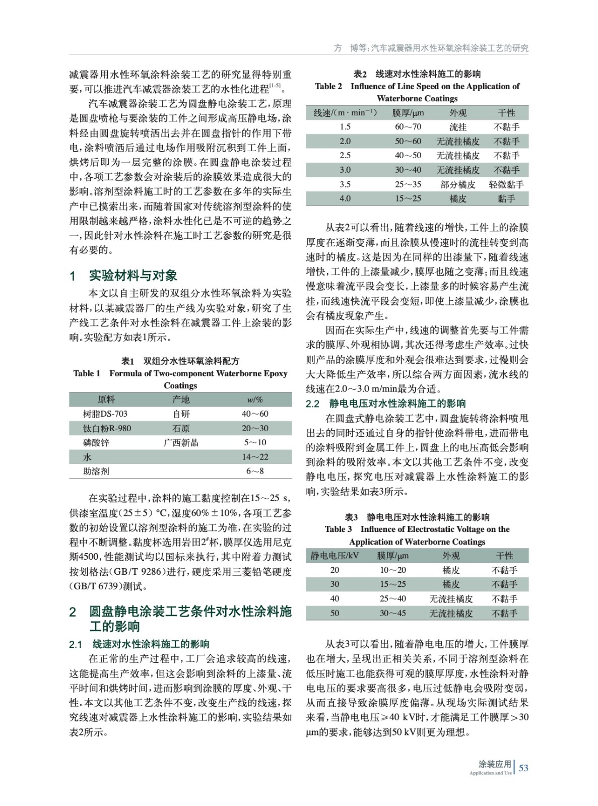 汽車減震器用水性環(huán)氧涂料涂裝工藝的研究