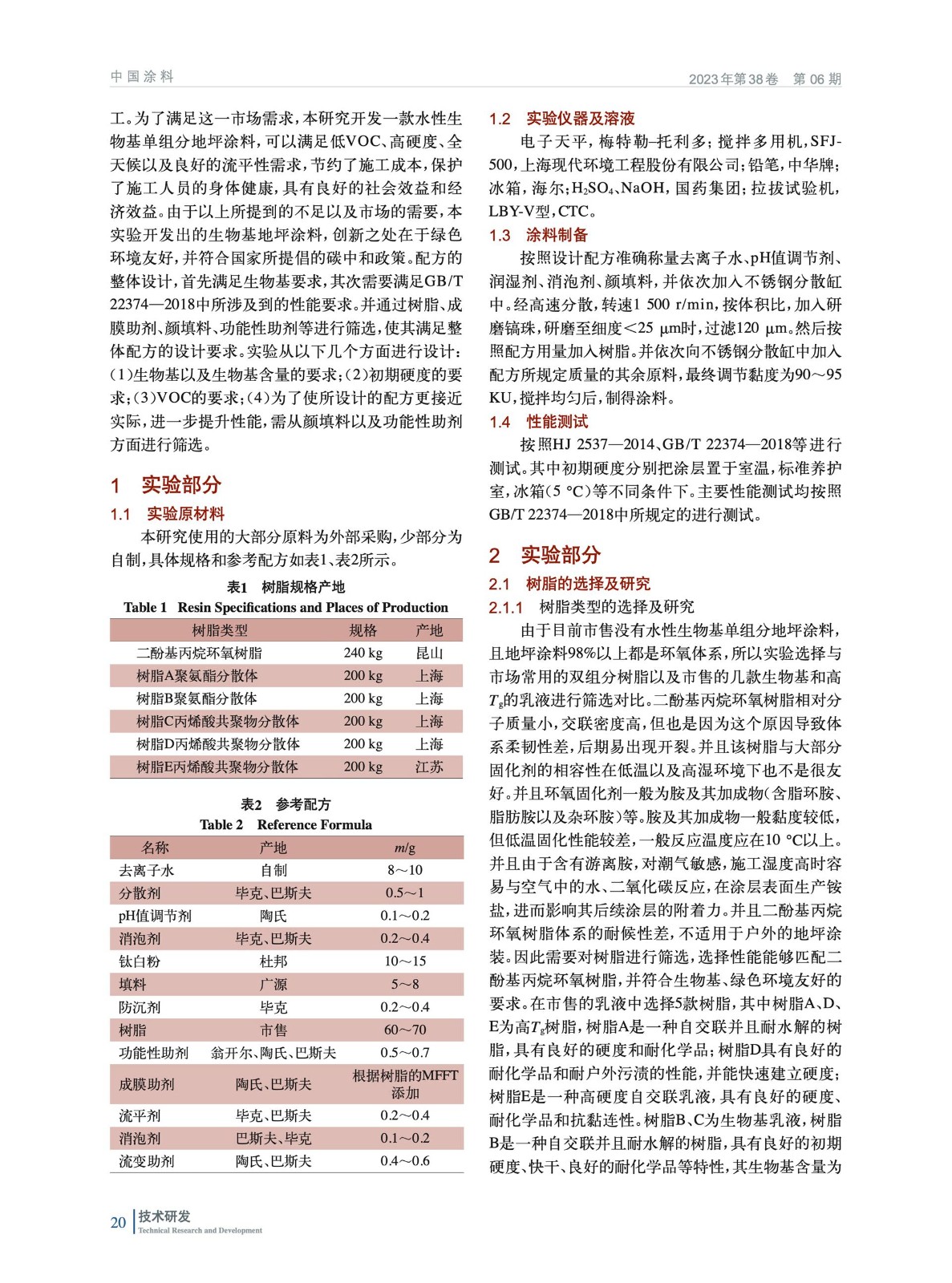 水性單組分生物基地坪涂料的配方設計及性能研究