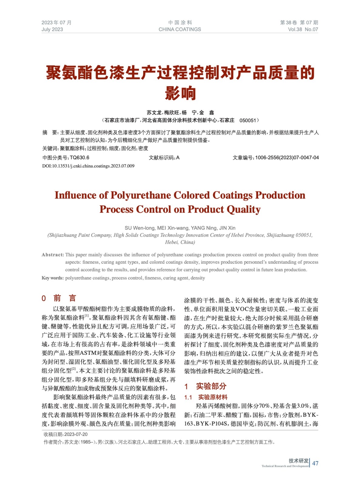 本文系作者@蘇文龍,梅欣旺,楊 寧,金 鑫 授權中國涂料網發表,并經中國涂料網編輯,未經允許不得轉載,如需轉載請聯系chinacoatingnet@vip.163.com