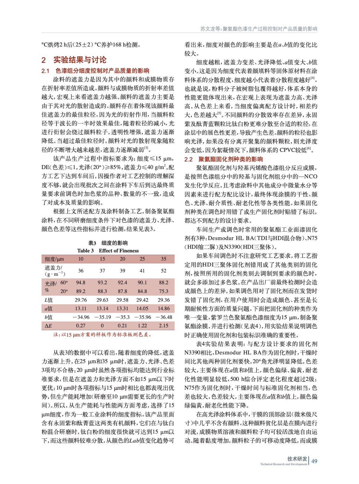 主要從細度、固化劑種類及色漆密度3個方面探討了聚氨酯涂料生產過程控制對產品質量的影響,并根據結果提升生產人員對工藝控制的認知,為今后精細化生產做好產品質量控制提供借鑒。