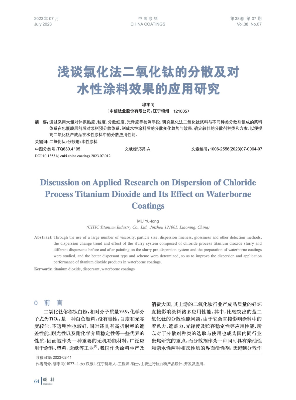 淺談氯化法二氧化鈦的分散及對水性涂料效果的應用研究