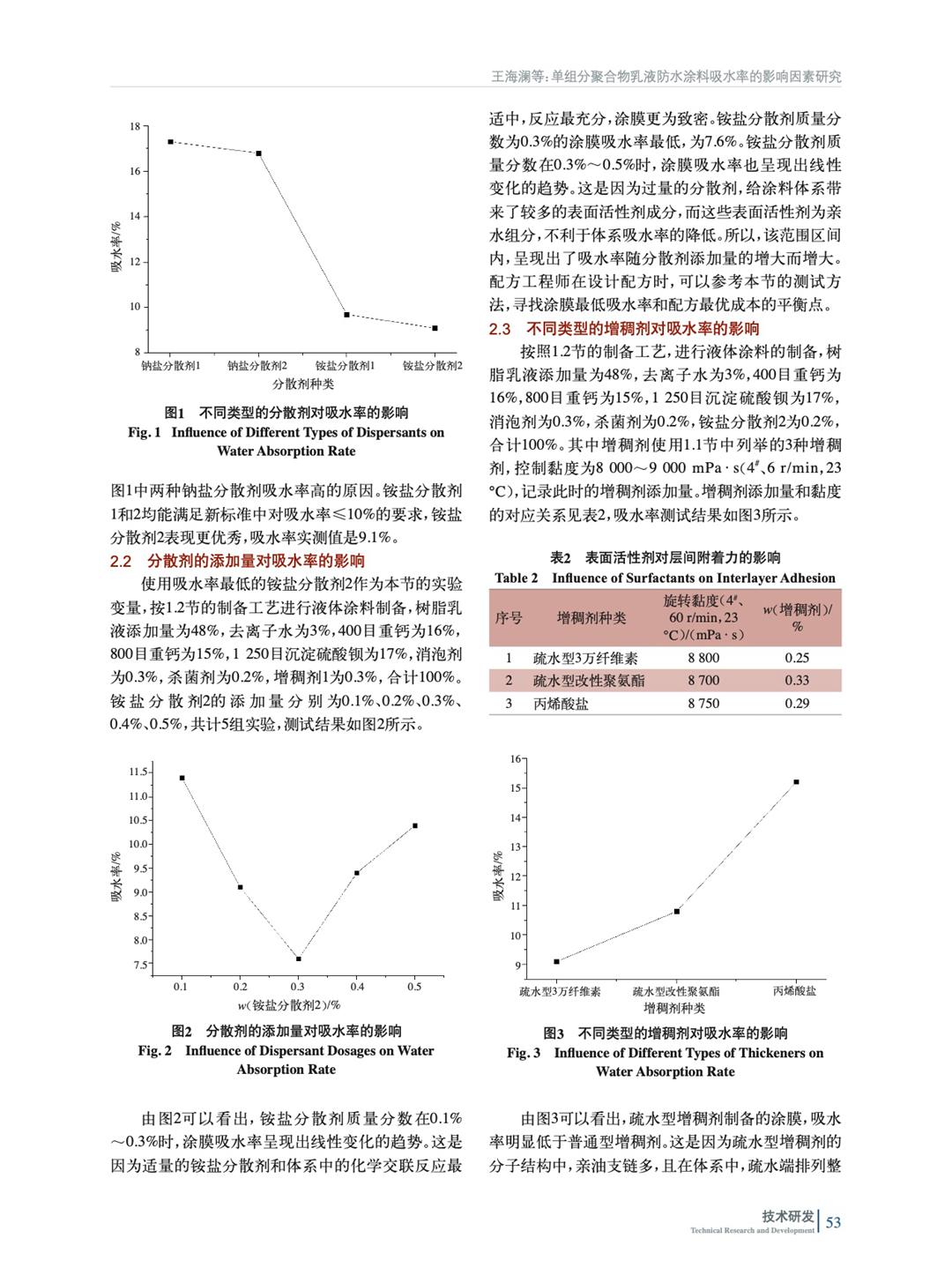 單組分聚合物乳液防水涂料吸水率的影響因素研究