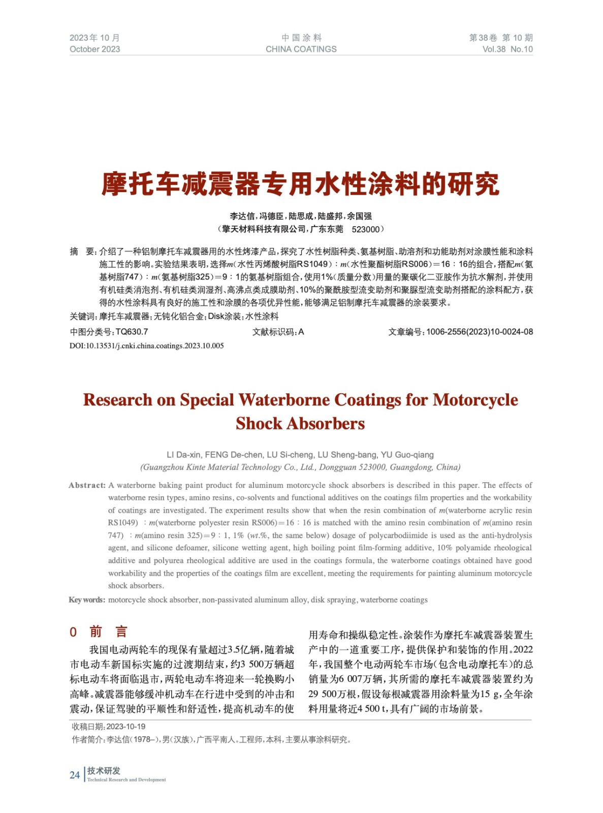 本文系作者@李達信,馮德臣,陸思成,陸盛邦,余國強 授權中國涂料網發表,并經中國涂料網編輯,未經允許不得轉載,如需轉載請聯系chinacoatingnet@vip.163.com