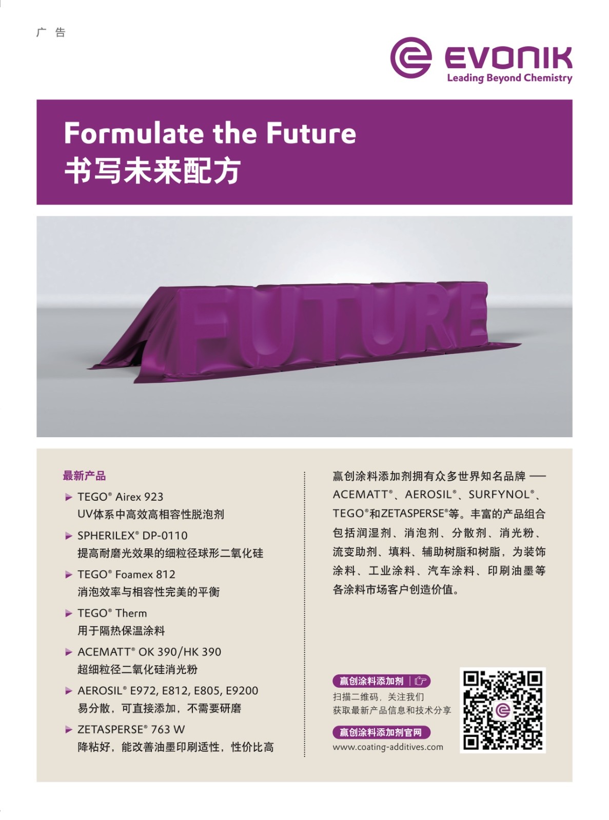 封1:江蘇布威倫環保科技有限公司;封2:贏創特種化學(上海)有限公司;封3:江蘇天問新材料科技有限公司;封4:浙江華源顏料股份有限公司