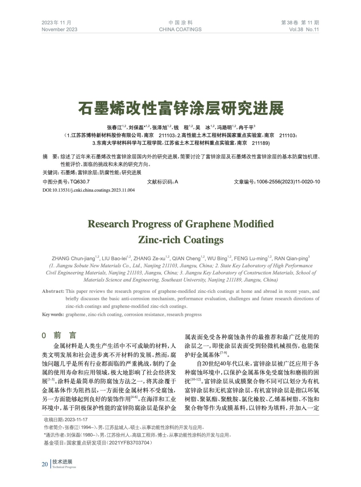 石墨烯改性富鋅涂層研究進(jìn)展