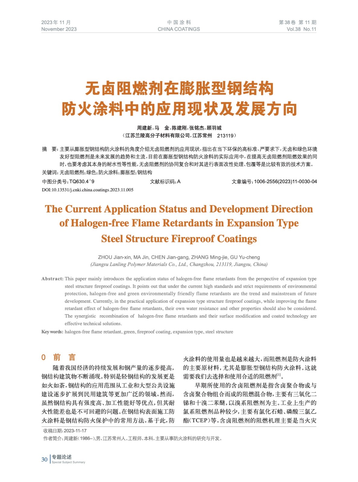 無鹵阻燃劑在膨脹型鋼結(jié)構(gòu)防火涂料中的應(yīng)用現(xiàn)狀及發(fā)展方向
