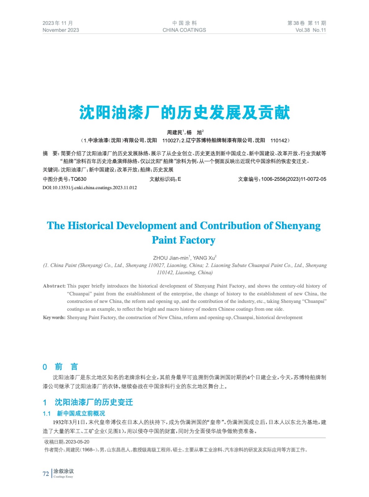 本文系作者@周建民,楊 旭 授權中國涂料網發表,并經中國涂料網編輯,未經允許不得轉載,如需轉載請聯系chinacoatingnet@vip.163.com