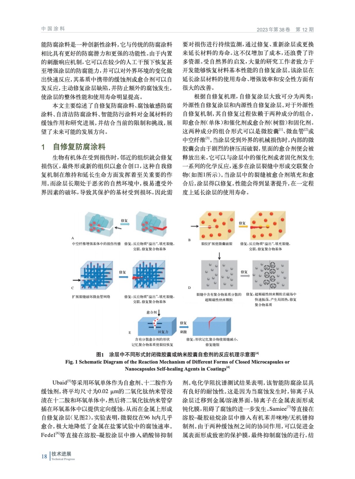 摘要:綜述了腐蝕敏感涂層、自修復涂層、防污涂層和自清潔涂層對金屬材料的緩蝕作用,這些智能涂料超過了傳統(tǒng)涂料的使用局限,具有抗劃傷、原位愈合、超疏水、熱穩(wěn)定性、耐強酸等優(yōu)異的阻隔性能,延長了涂層和受保護金屬材料的使用壽命。智能防腐涂層在復雜、實時條件下的應用,有效地控制了金屬腐蝕、結(jié)構(gòu)失效和資源消耗的觸發(fā)因素。