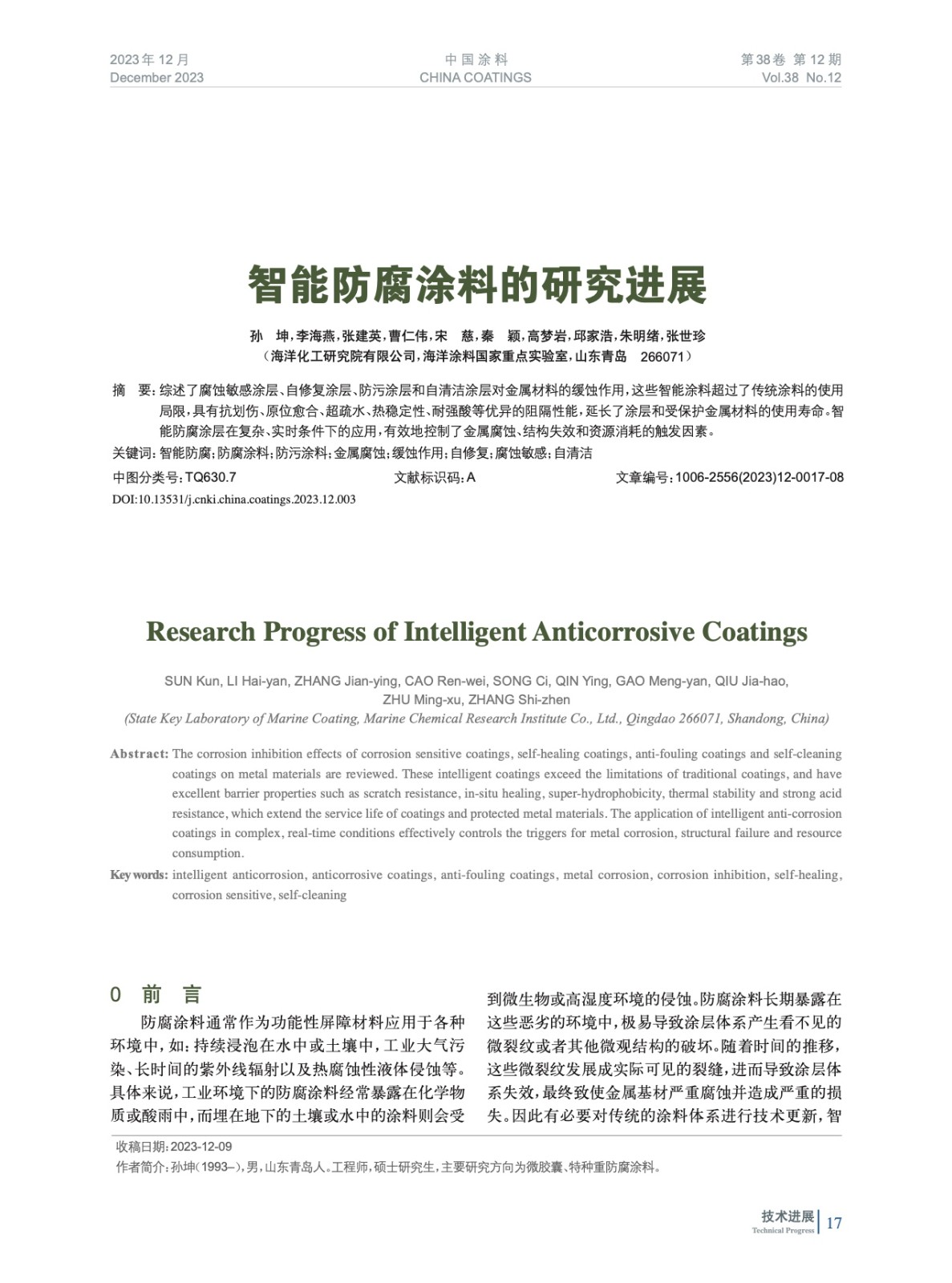 本文系作者@孫 坤,李海燕,張建英,曹仁偉,宋 慈,秦 穎,高夢巖,邱家浩,朱明緒,張世珍 授權(quán)中國涂料網(wǎng)發(fā)表,并經(jīng)中國涂料網(wǎng)編輯,未經(jīng)允許不得轉(zhuǎn)載,如需轉(zhuǎn)載請聯(lián)系chinacoatingnet@vip.163.com