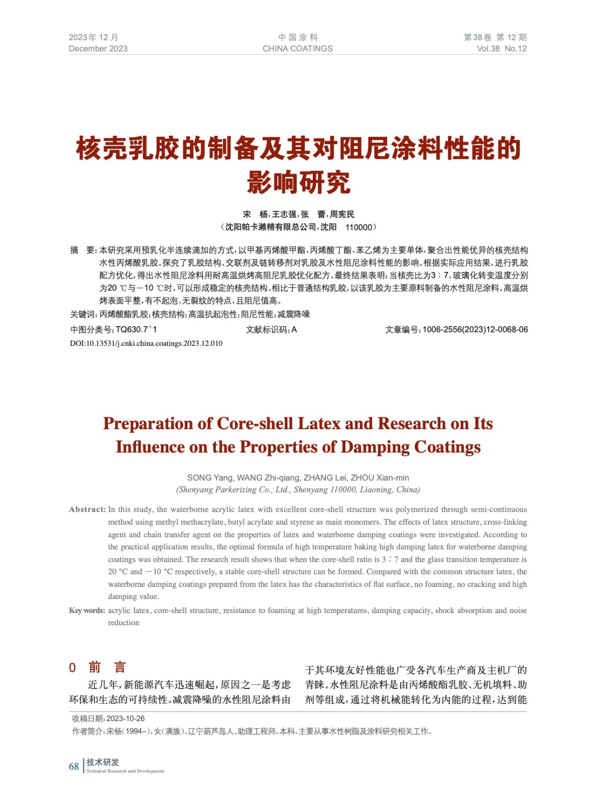 本文系作者@宋 楊,王志強,張 蕾,周憲民 授權中國涂料網發表,并經中國涂料網編輯,未經允許不得轉載,如需轉載請聯系chinacoatingnet@vip.163.com