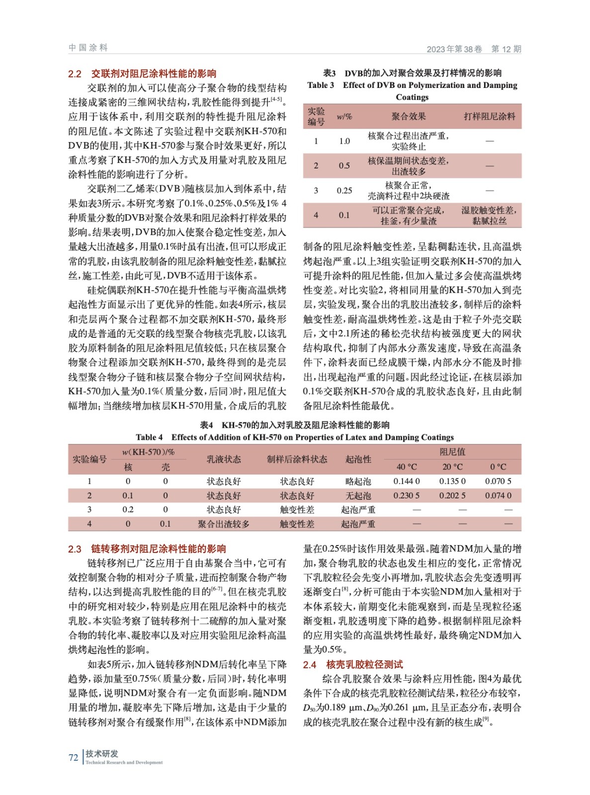 核殼乳膠的制備及其對阻尼涂料性能的影響研究