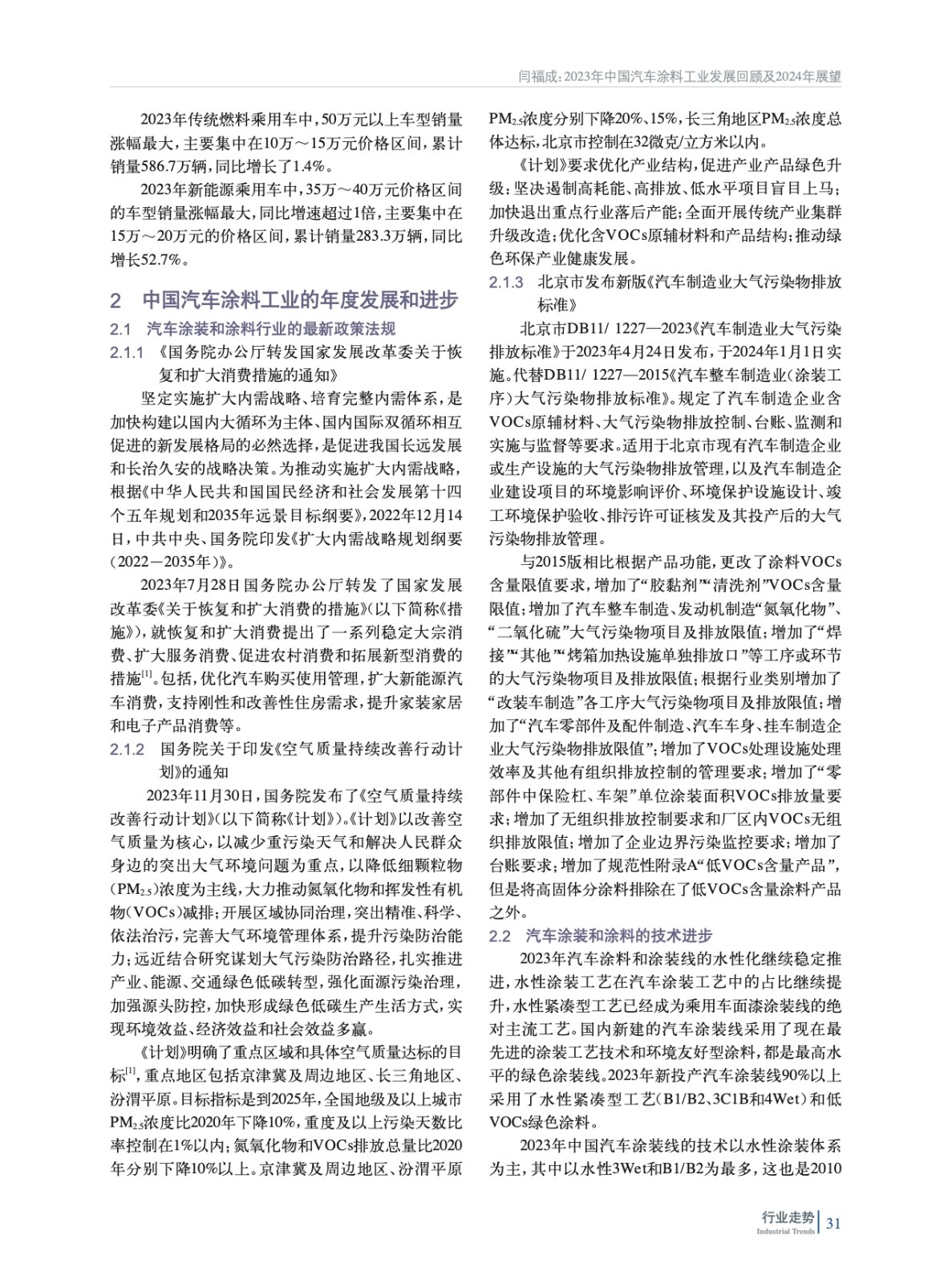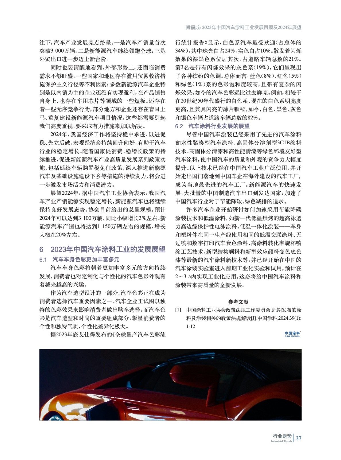 2023年中國汽車涂料工業發展回顧及2024年展望