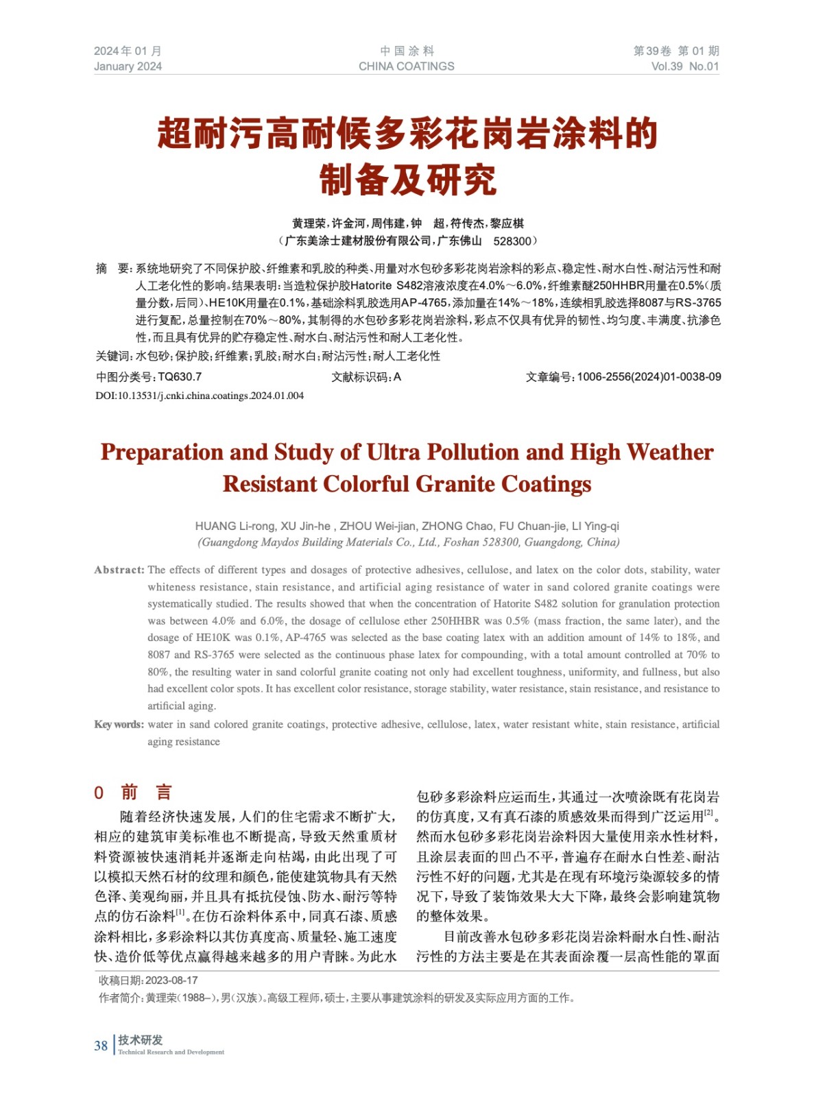 本文系作者@黃理榮,許金河,周偉建,鐘 超,符傳杰,黎應(yīng)棋 授權(quán)中國涂料網(wǎng)發(fā)表,并經(jīng)中國涂料網(wǎng)編輯,未經(jīng)允許不得轉(zhuǎn)載,如需轉(zhuǎn)載請聯(lián)系chinacoatingnet@vip.163.com