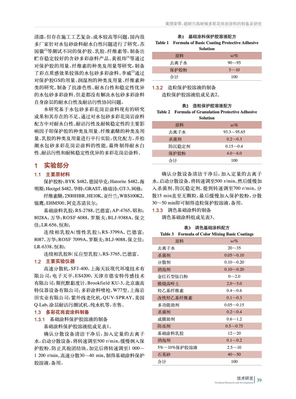 超耐污高耐候多彩花崗巖涂料的制備及研究