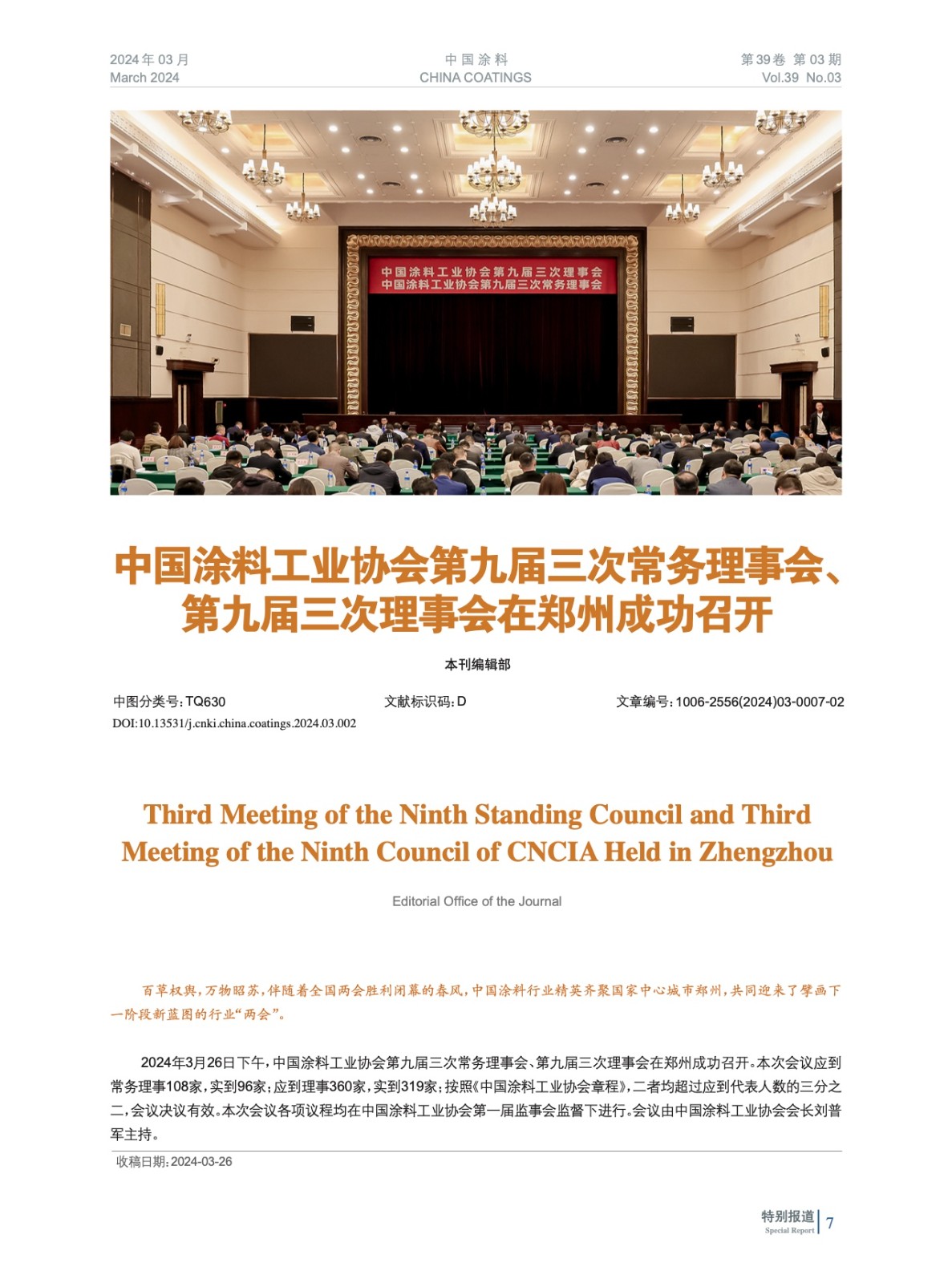 中國涂料工業協會第九屆三次常務理事會、第九屆三次理事會在鄭州成功召開
