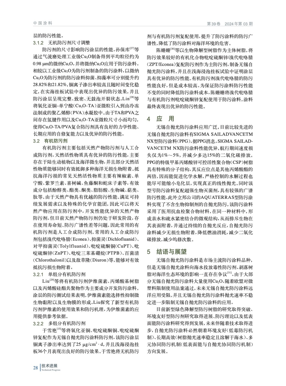 摘要:海洋污損生物附著問(wèn)題一直影響海洋運(yùn)輸與海洋工程行業(yè)的發(fā)展。為減輕海洋生物附著所帶來(lái)的困擾,防污涂料被廣泛應(yīng)用,而無(wú)錫自?huà)伖馔苛希═FSPC)因其卓越的防污性能和低毒性而成為防污涂料市場(chǎng)的主流產(chǎn)品。詳細(xì)探討了無(wú)錫自?huà)伖馔苛系墓ぷ鳈C(jī)理、成分組成以及目前的應(yīng)用狀況。