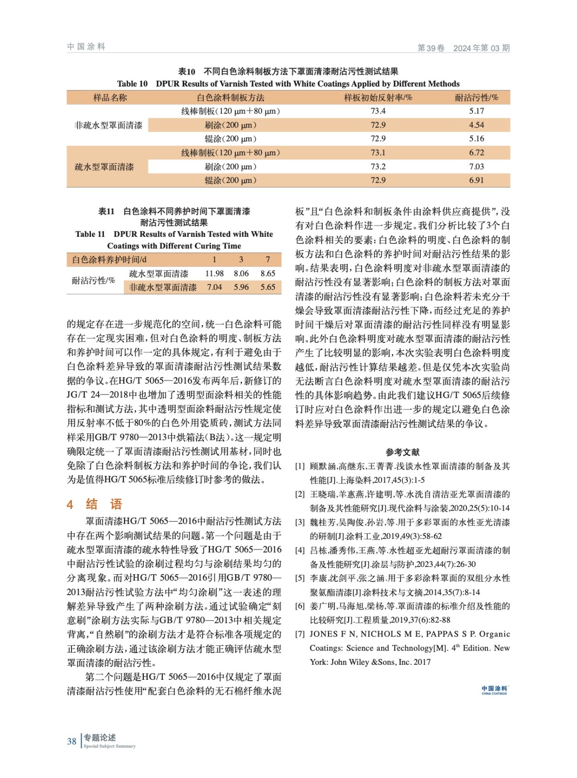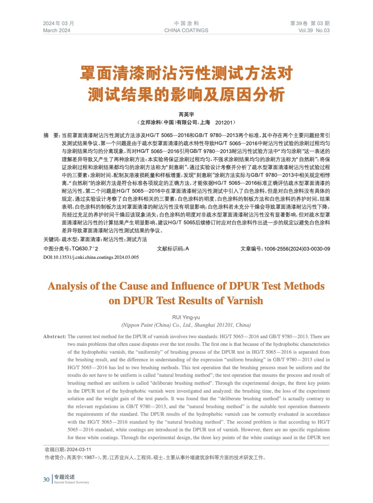 罩面清漆耐沾污性測試方法對測試結果的影響及原因分析