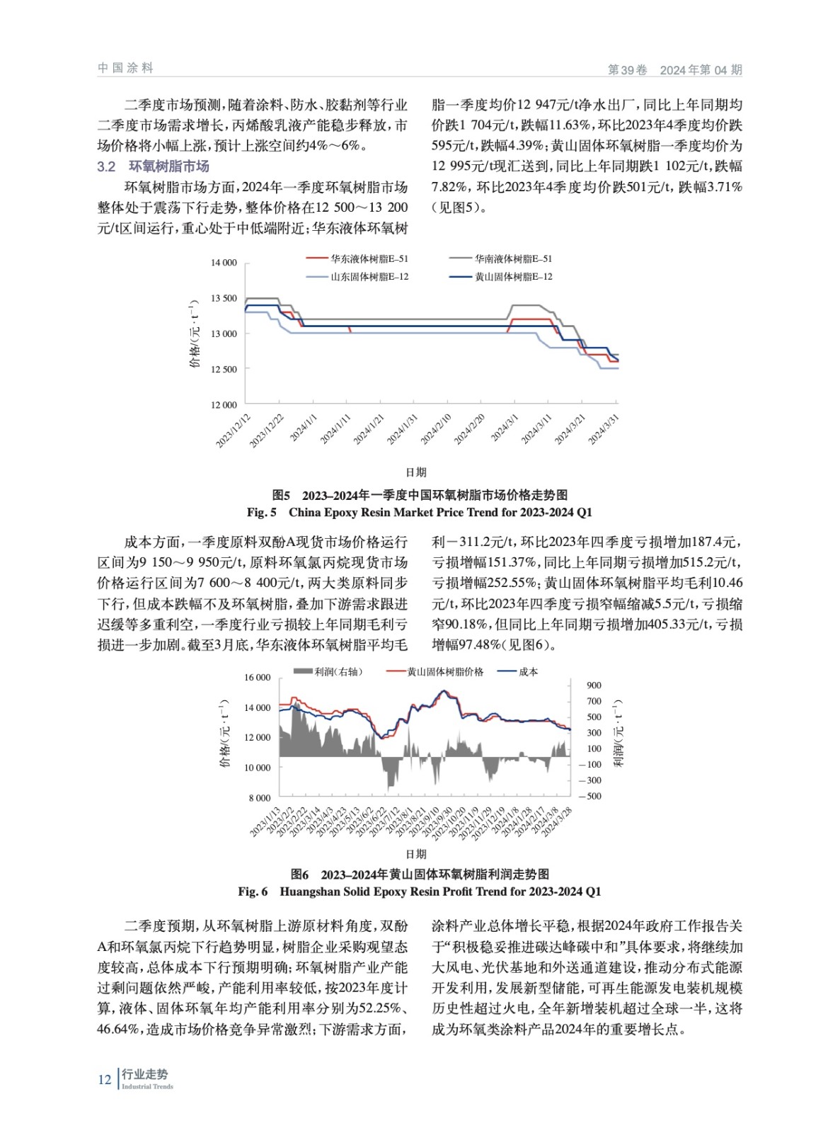 簡析了2024年第一季度我國涂料行業生產、經營和涂料、無機顏料行業進出口簡況,并對丙烯酸乳液、環氧樹脂等重點成膜物質市場進行了綜述和預測。對2024年一季度涂料行業雙指數進行了分析,并對二季度市場進行了預測。