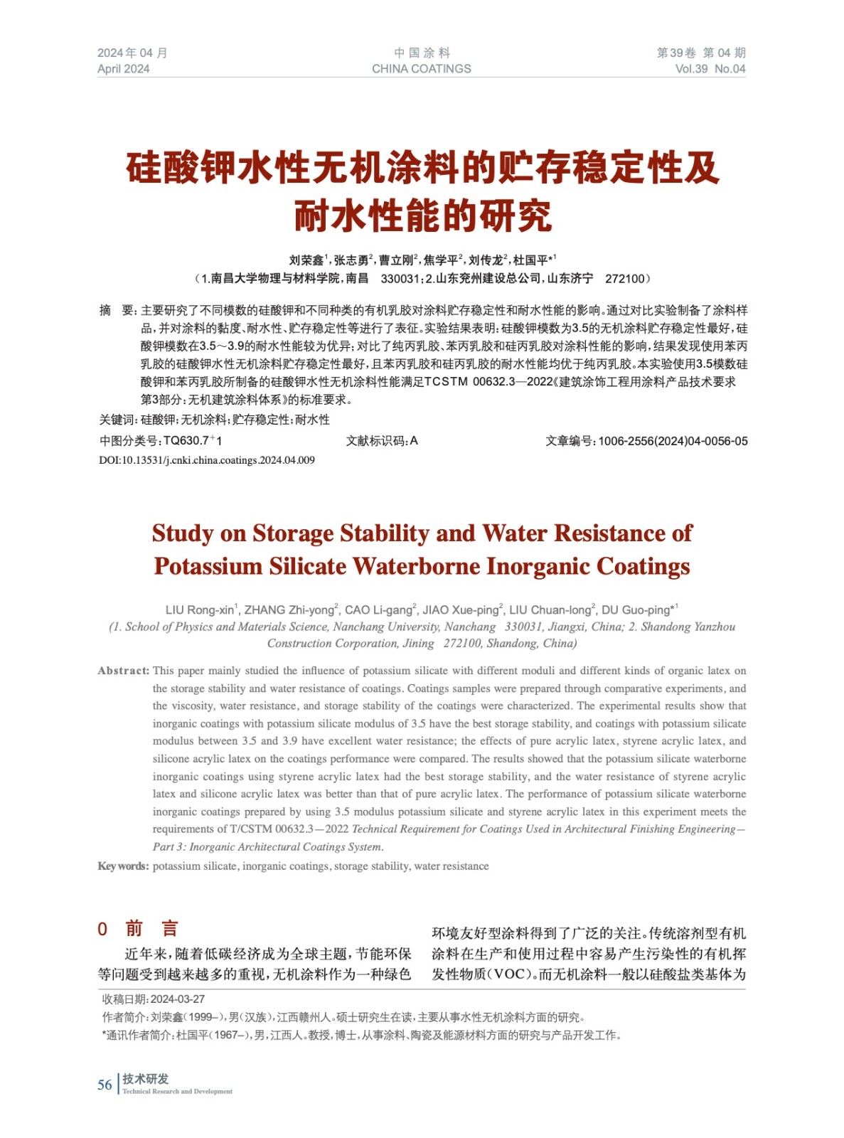 本文系作者@劉榮鑫,張志勇,曹立剛,焦學平,劉傳龍,杜國平 授權中國涂料網發表,并經中國涂料網編輯,未經允許不得轉載,如需轉載請聯系chinacoatingnet@vip.163.com