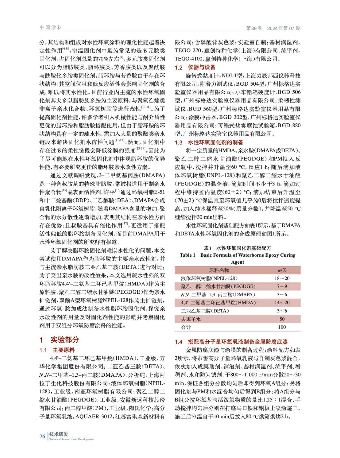 基于3–二甲氨基丙胺在水性脂環胺固化劑中的應用研究