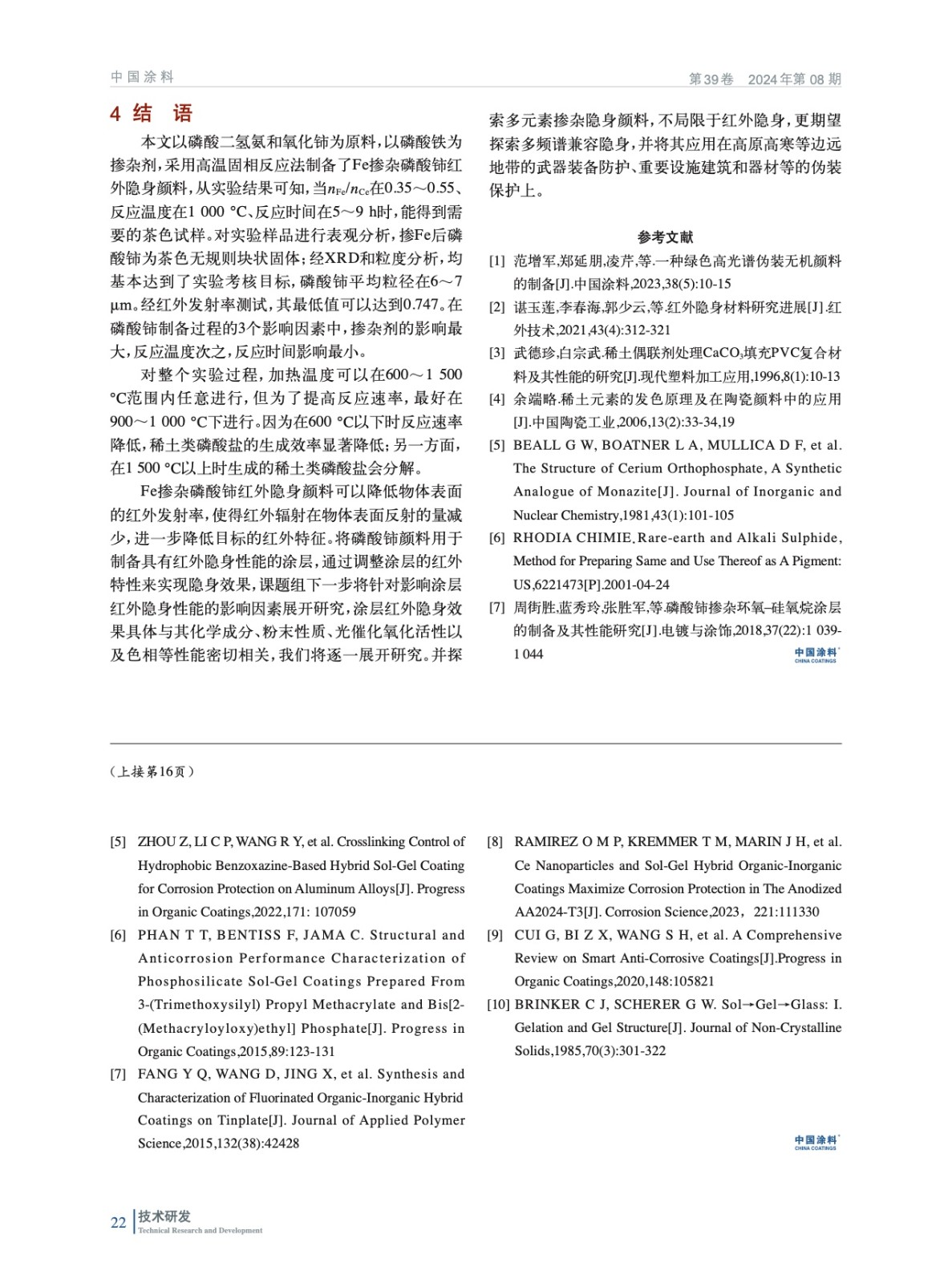 一種磷酸鈰偽裝無機顏料的制備與紅外隱身應用研究