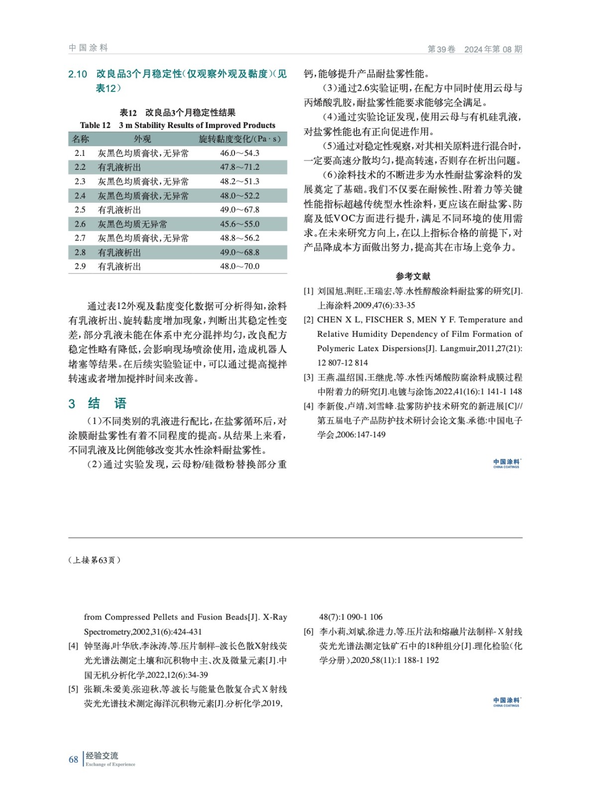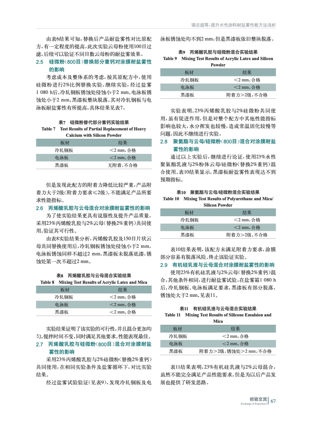 摘要:論證了不同材料對水性涂料耐鹽霧性能有著很大影響,如丙烯酸乳膠、聚氨酯乳液、有機硅樹脂、云母粉及耐鹽霧助劑的使用,均可以提高產(chǎn)品耐鹽霧性。主要研究水性涂膜在鹽霧箱中1 080 h的表現(xiàn),確認不同材料對耐鹽霧性能的提升有如何影響,在此基礎來改善汽車鋼板或者電泳板材料耐腐蝕性能,并在常溫固化的情況下滿足產(chǎn)品其他所需性能。