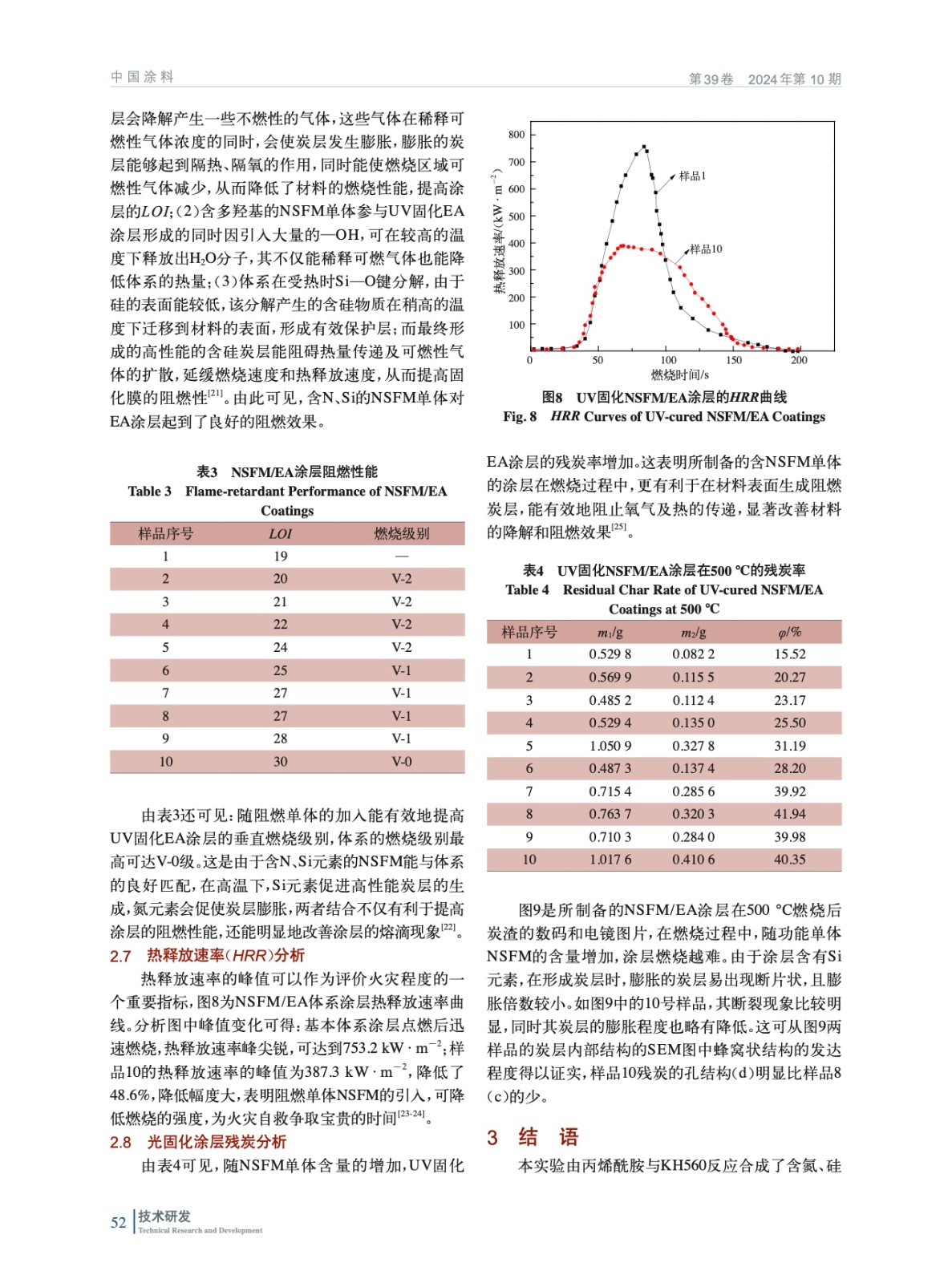 新穎含N和Si阻燃環氧丙烯酸酯涂層的制備與性能