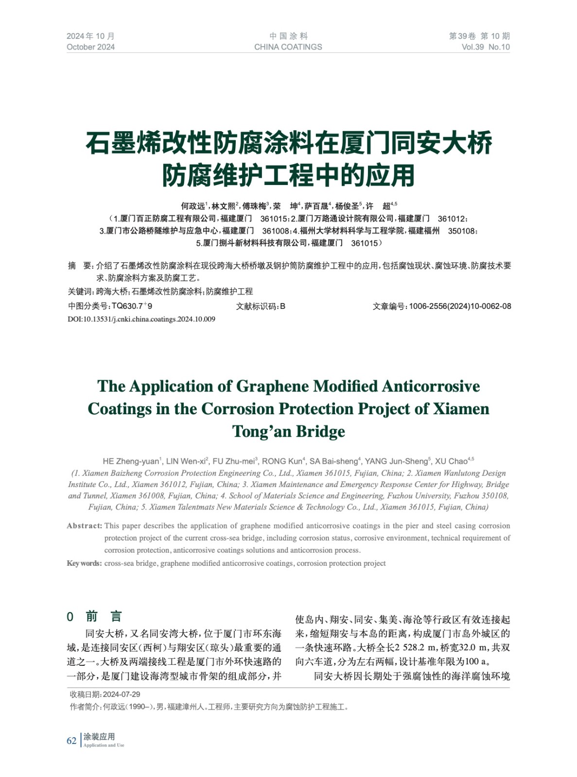 石墨烯改性防腐涂料在廈門同安大橋防腐維護工程中的應用