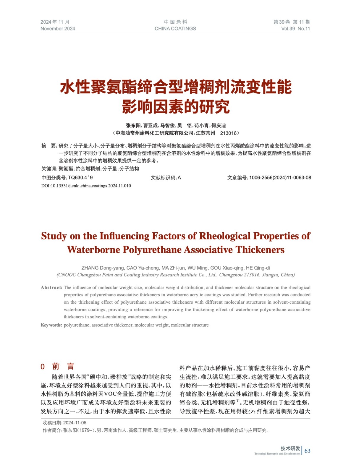 本文系作者@張東陽(yáng),曹亞成,馬智俊,吳 銘,茍小青,何慶迪 授權(quán)中國(guó)涂料網(wǎng)發(fā)表,并經(jīng)中國(guó)涂料網(wǎng)編輯,未經(jīng)允許不得轉(zhuǎn)載,如需轉(zhuǎn)載請(qǐng)聯(lián)系chinacoatingnet@vip.163.com