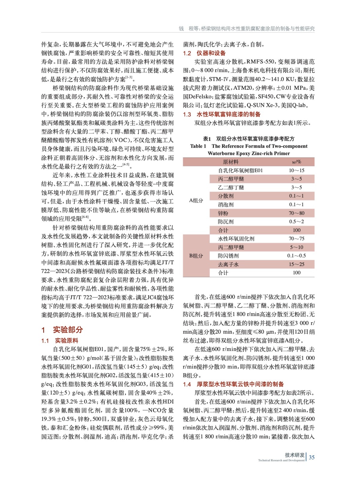 橋梁鋼結構用水性重防腐配套涂層的制備與性能研究