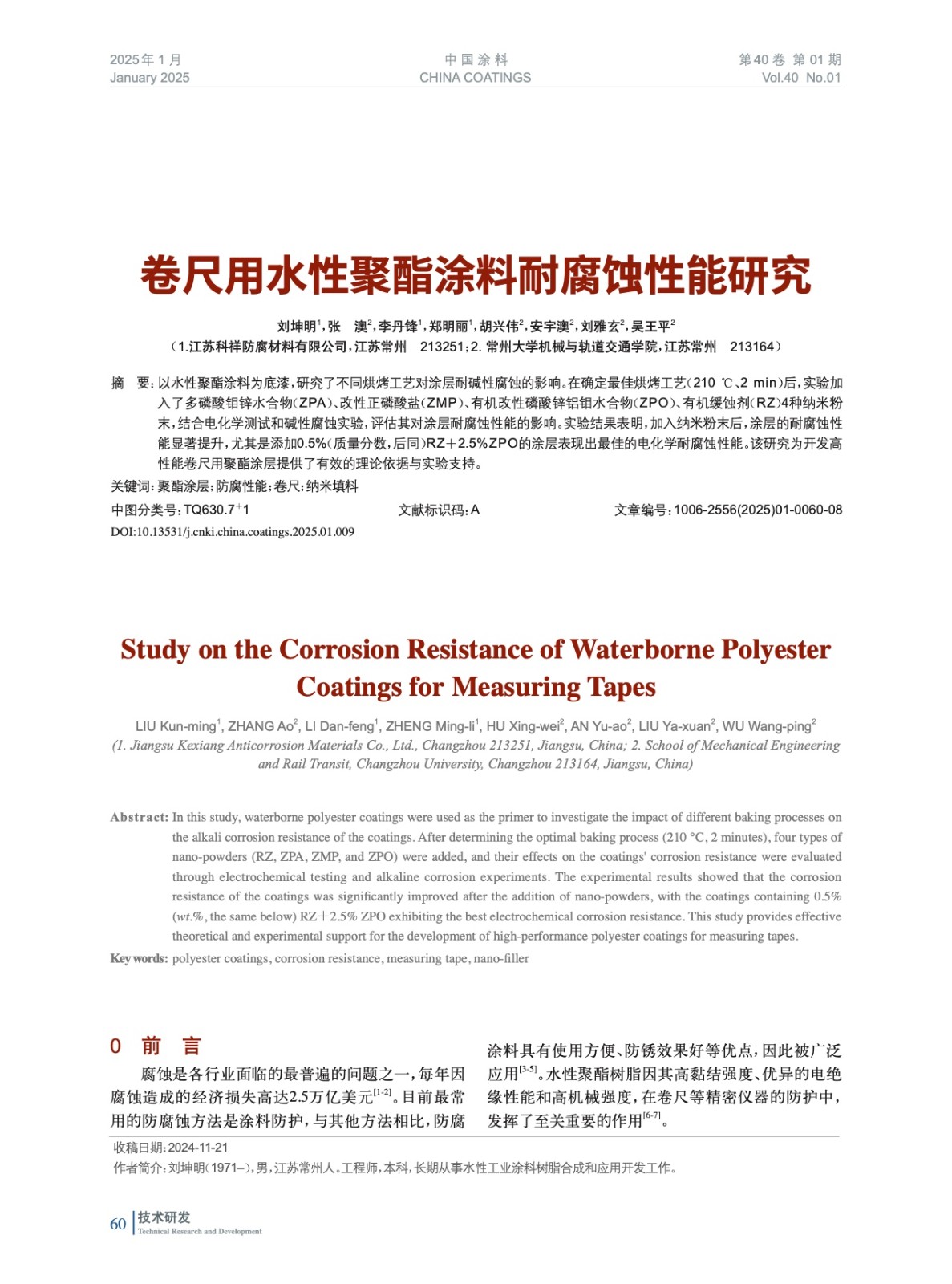 本文系作者@劉坤明,張 澳,李丹鋒,鄭明麗,胡興偉,安宇澳,劉雅玄,吳王平 授權中國涂料網發(fā)表,并經中國涂料網編輯,未經允許不得轉載,如需轉載請聯系chinacoatingnet@vip.163.com