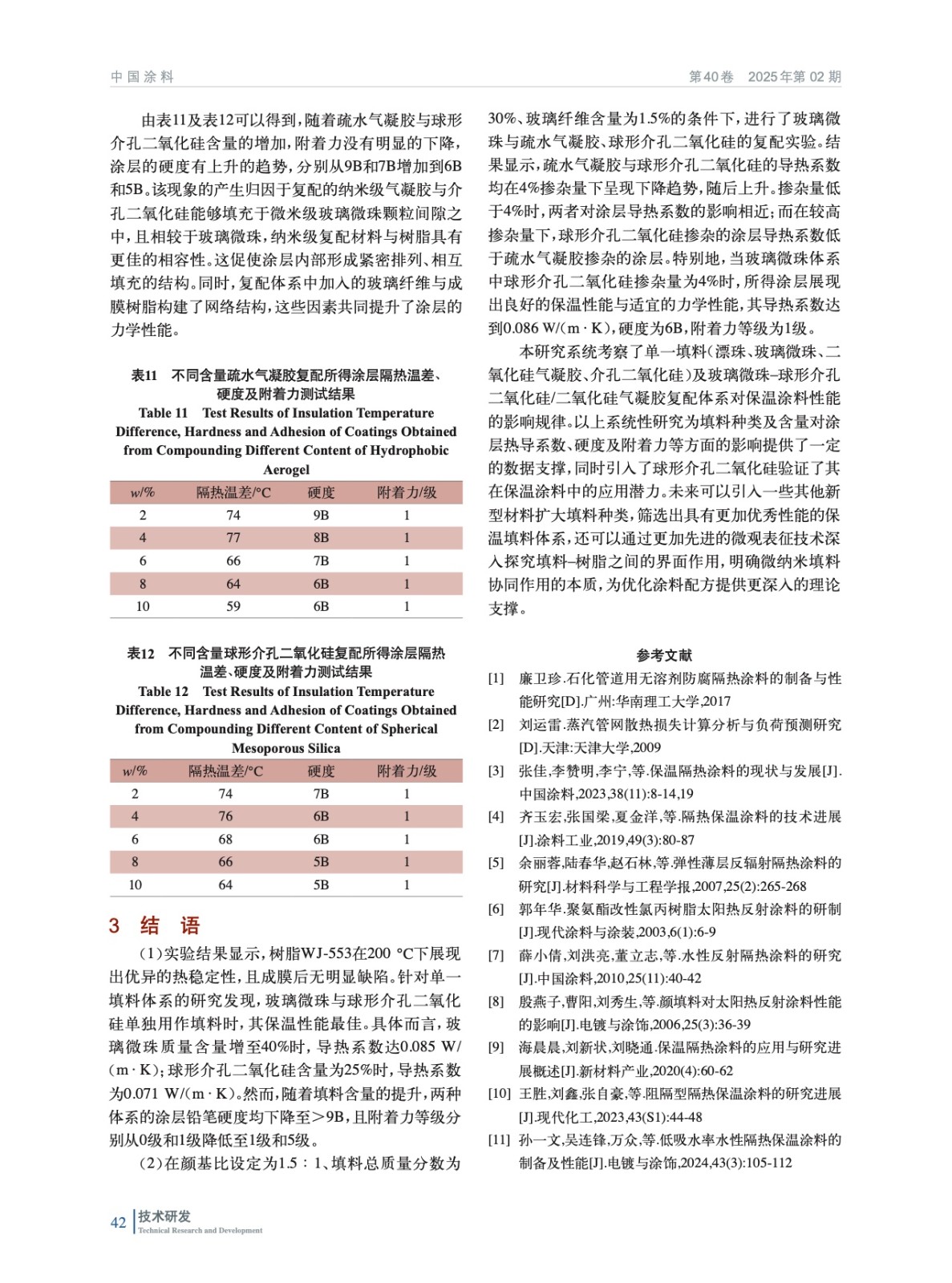 摘要:針對工業節能領域對高溫保溫材料的迫切需求,針對傳統涂層在200 ℃溫區存在的厚度過大、施工工藝復雜及功能單一等問題,系統開展保溫涂層的研發。選取無機體系樹脂作為成膜物質,采用以SiO2為主要成分的漂珠、玻璃微珠、氣凝膠和介孔二氧化硅為填料,通過中空或多孔結構降低熱傳導,且適配多種基體的分散性,實現高效隔熱與工藝兼容性。實驗考察了不同樹脂、填料、顏基比及復配比例對保溫涂料隔熱溫差、導熱系數、硬度和附著力的影響。結果發現,以無機體系樹脂WJ-553為成膜樹脂,顏基比1.5∶1,中空玻璃微珠與球形介孔二氧化硅填料總質量分數為30%,球形介孔二氧化硅摻雜量為4%時,保溫涂料導熱系數可達0.086 W/(m·K),硬度6B,附著力等級為1級,耐溫性能突破200 ℃閾值。該研究成果為開發兼具高效隔熱、機械可靠及施工便利的新型工業保溫涂層提供了理論依據和技術方案,在高溫管道、工業窯爐等節能領域展現出重要應用價值。