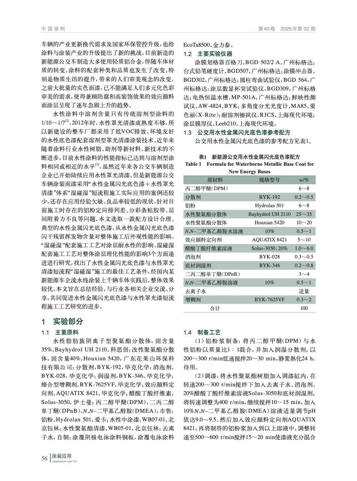 公交車用水性金屬閃光底色漆與水性罩光清漆短流程施工工藝研究