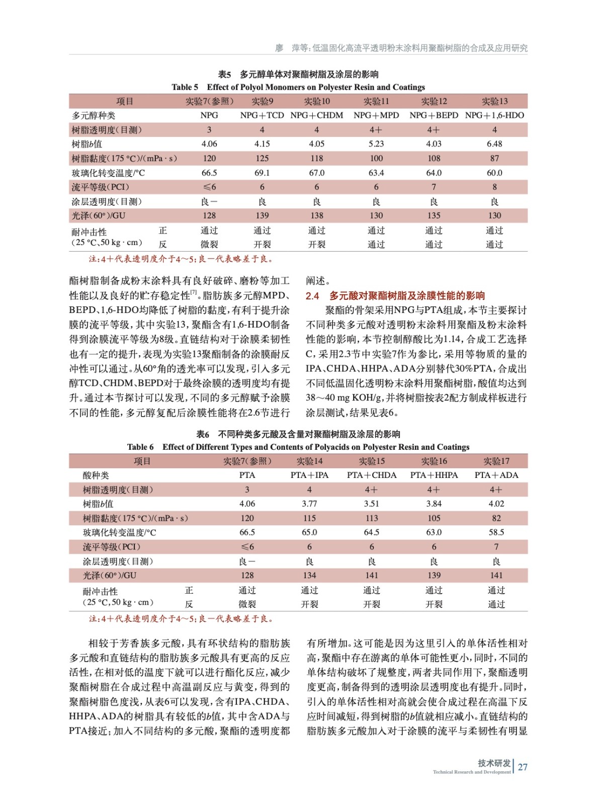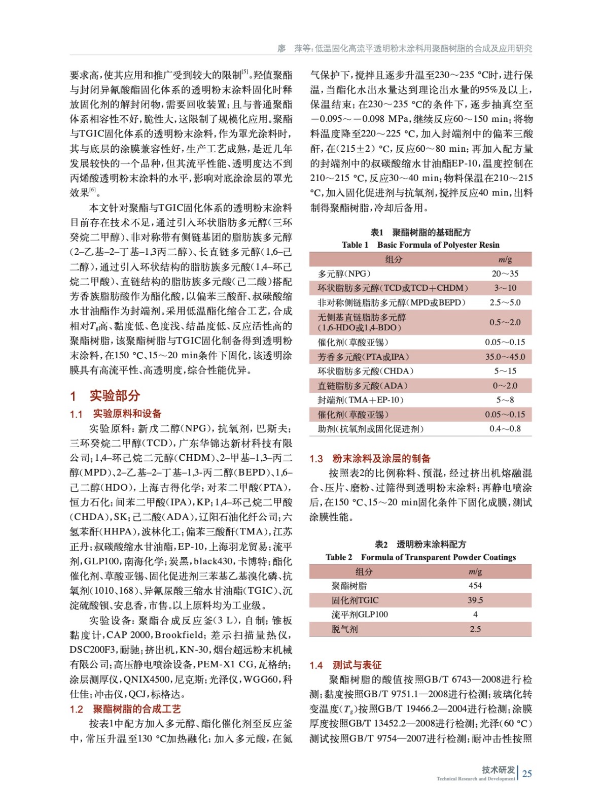 低溫固化高流平透明粉末涂料用聚酯樹脂的合成及應用研究