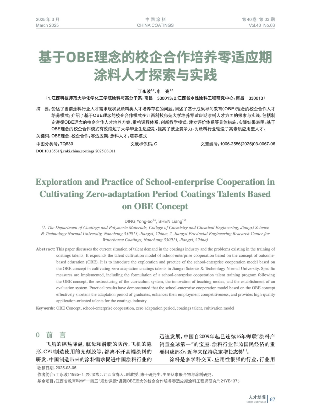基于OBE理念的校企合作培養零適應期涂料人才探索與實踐