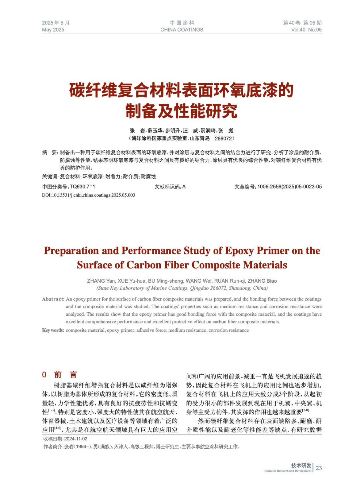 碳纖維復(fù)合材料表面環(huán)氧底漆的制備及性能研究