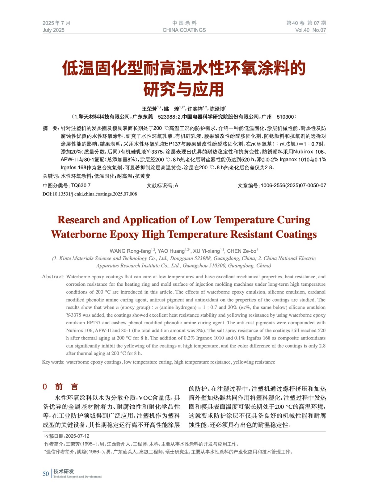 本文系作者@王榮芳,姚 煌,許奕祥,陳澤博 授權中國涂料網發表,并經中國涂料網編輯,未經允許不得轉載,如需轉載請聯系chinacoatingnet@vip.163.com