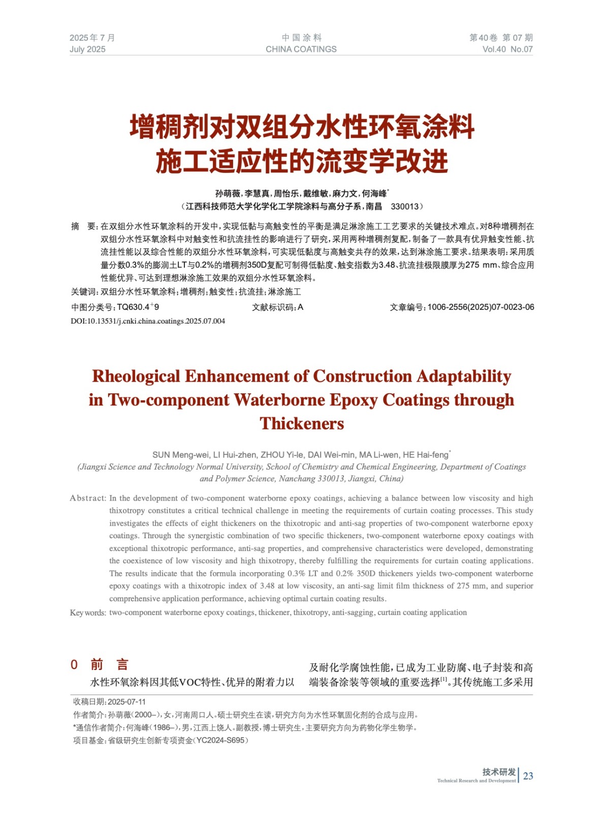增稠劑對雙組分水性環氧涂料施工適應性的流變學改進