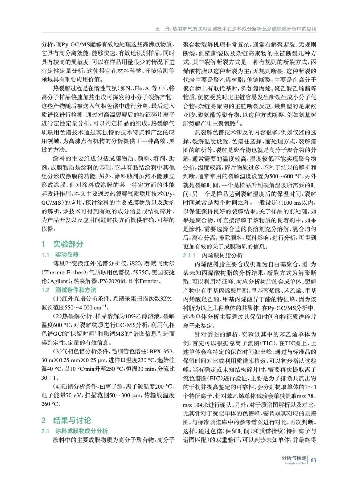 熱裂解氣質聯用色譜技術在涂料成分解析及涂膜缺陷分析中的應用