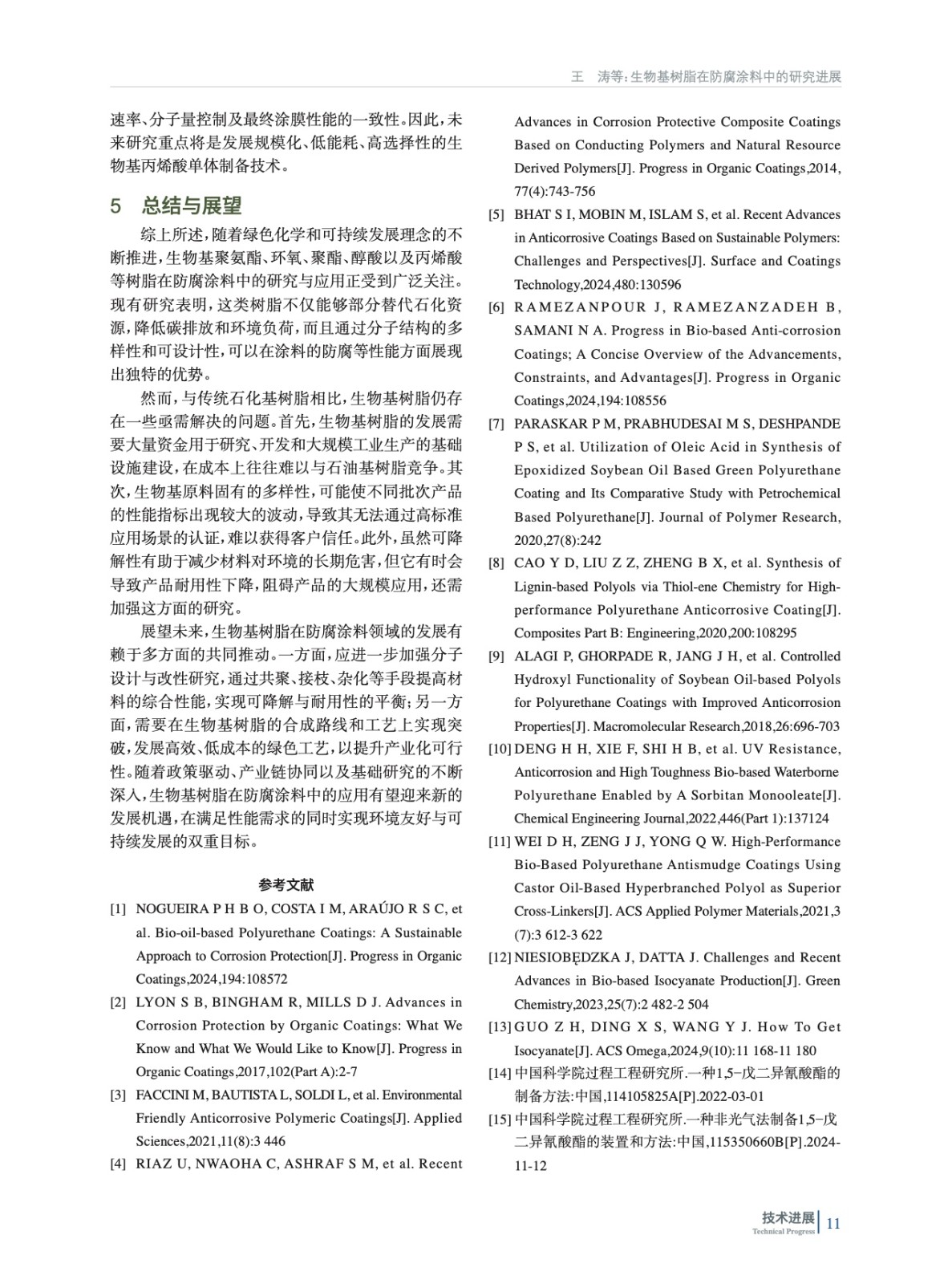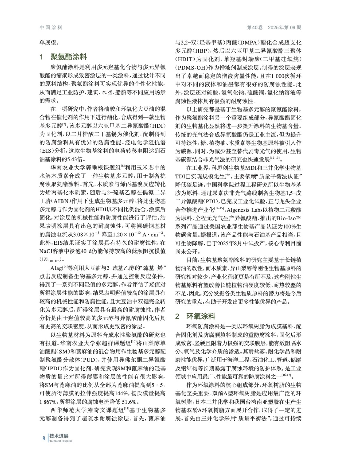 介紹了生物基樹脂在防腐涂料中的研究進展,列舉了代表性的學術研究成果,對其中一些產品的工業化進程作了簡單介紹,并展望防腐涂料用生物基樹脂的發展前景。